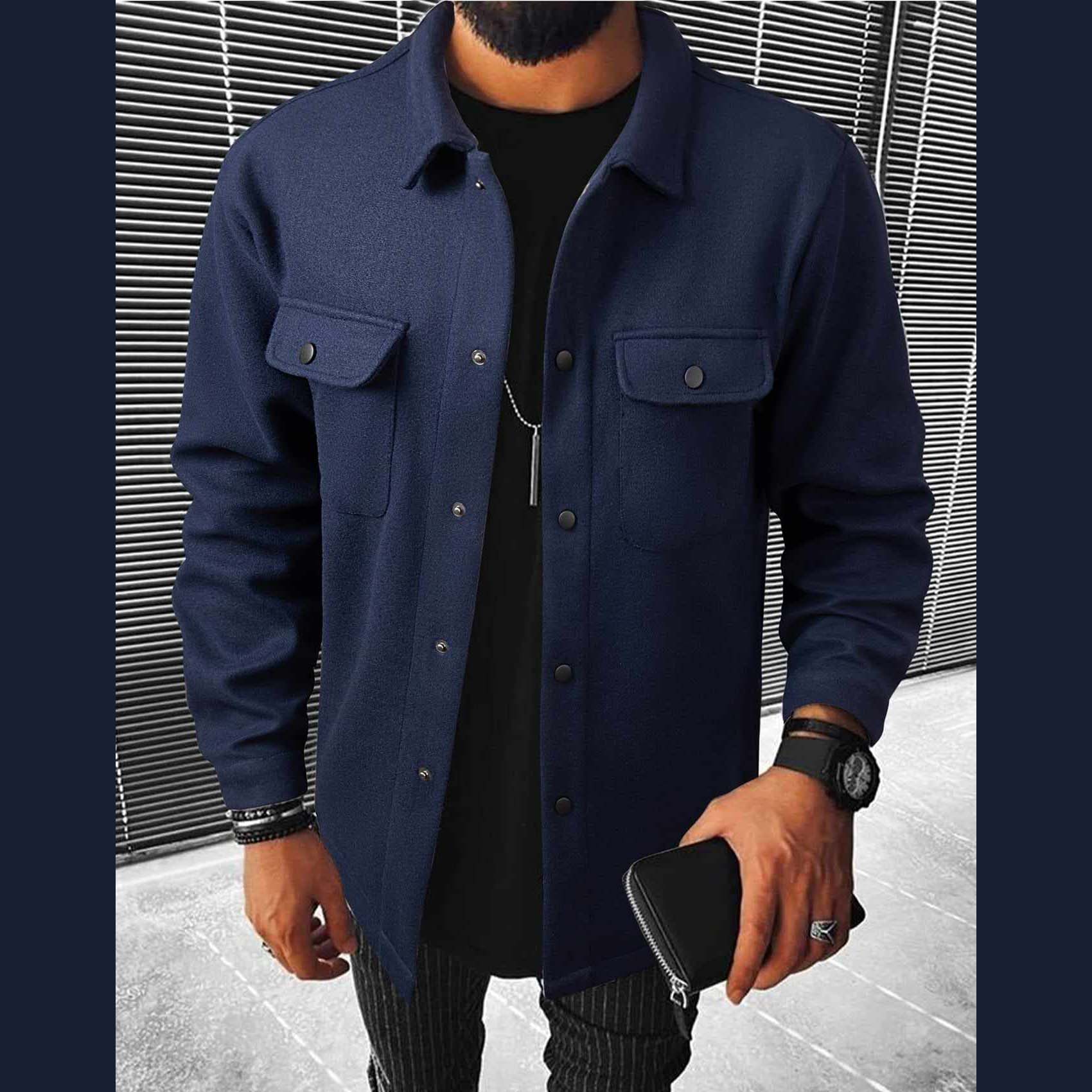 Zayra Double Pocket Collar Style Casual Fleece Winter Button Jacket D-3.